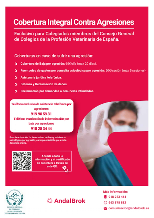 Además de los servicios jurídicos contratados por el Colegio de Madrid, a través del Bufete Europeo de Abogados, cuyo alcance y contacto figuran en la sección “Más información” y “¿Cómo acceder al servicio?”, el Consejo General ha contratado a nivel nacional una cobertura de seguros en caso de sufrir una agresión, cuyo detalle se explica en el documento (VER). Se recomienda, en cualquier caso, consultar previamente al Bufete mencionado antes de requerir o gestionar el siniestro ante la compañía aseguradora.